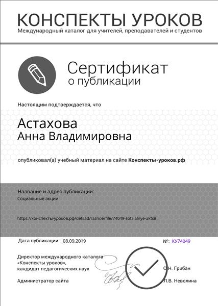 | консультация для педагогов МДОУ "Лесная сказка" | "Социальные акции" | http:// | Файл (DOCX; 15Кб) |